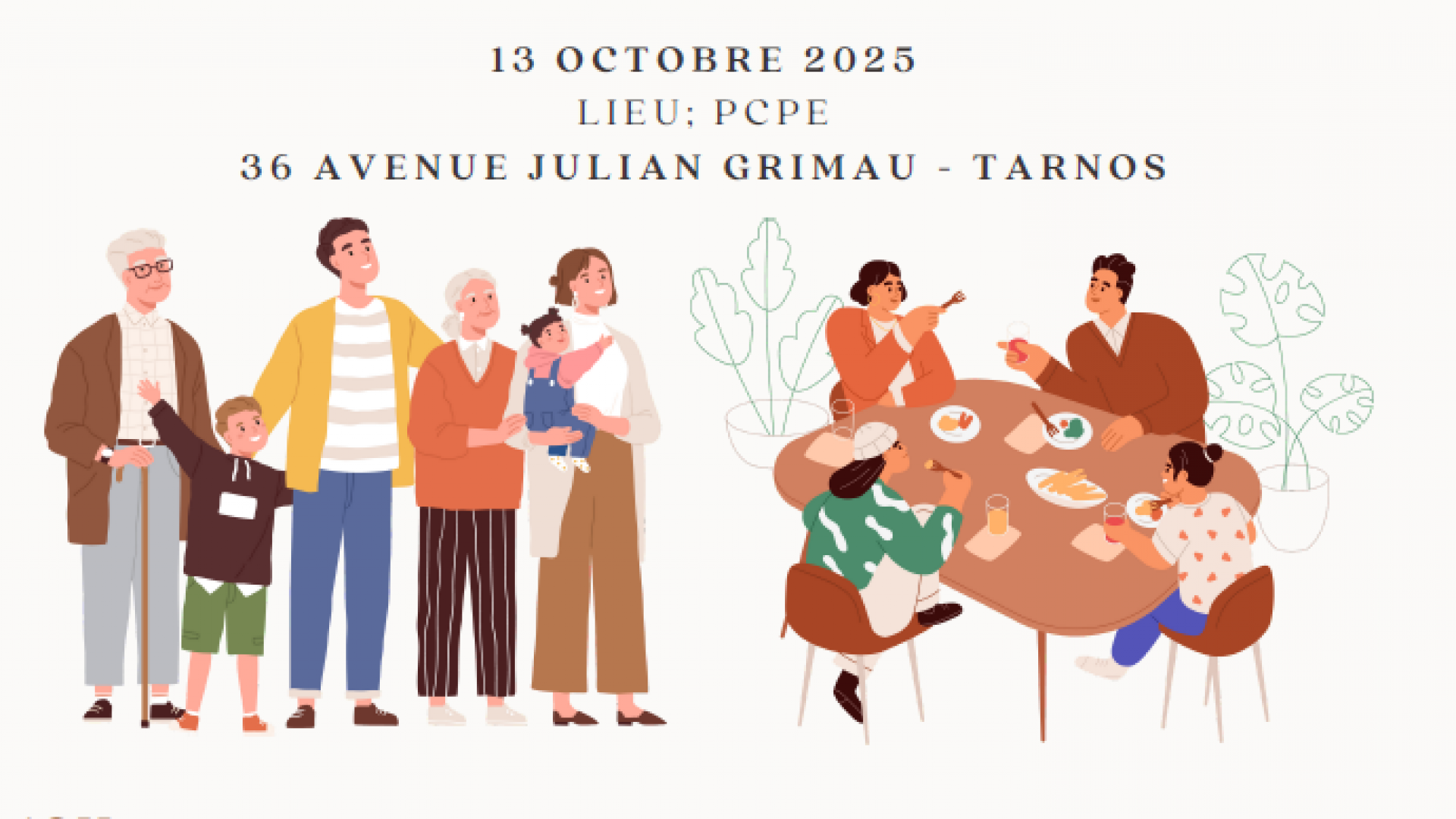 - Ouverture du repas partagé : manger et discuter librement, autour des plats confectionnés et apportés par chaque participant. Dans la mesure du possible, chacun apportera à manger.